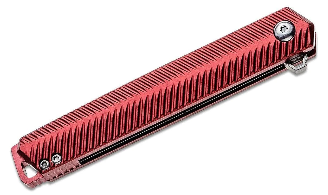 CRKT K820BXP Ken Onion Stylus Assisted Flipper Knife 3.18″ Sandvik 12C27 Satin Plain Blade, Maroon Aluminum Handles