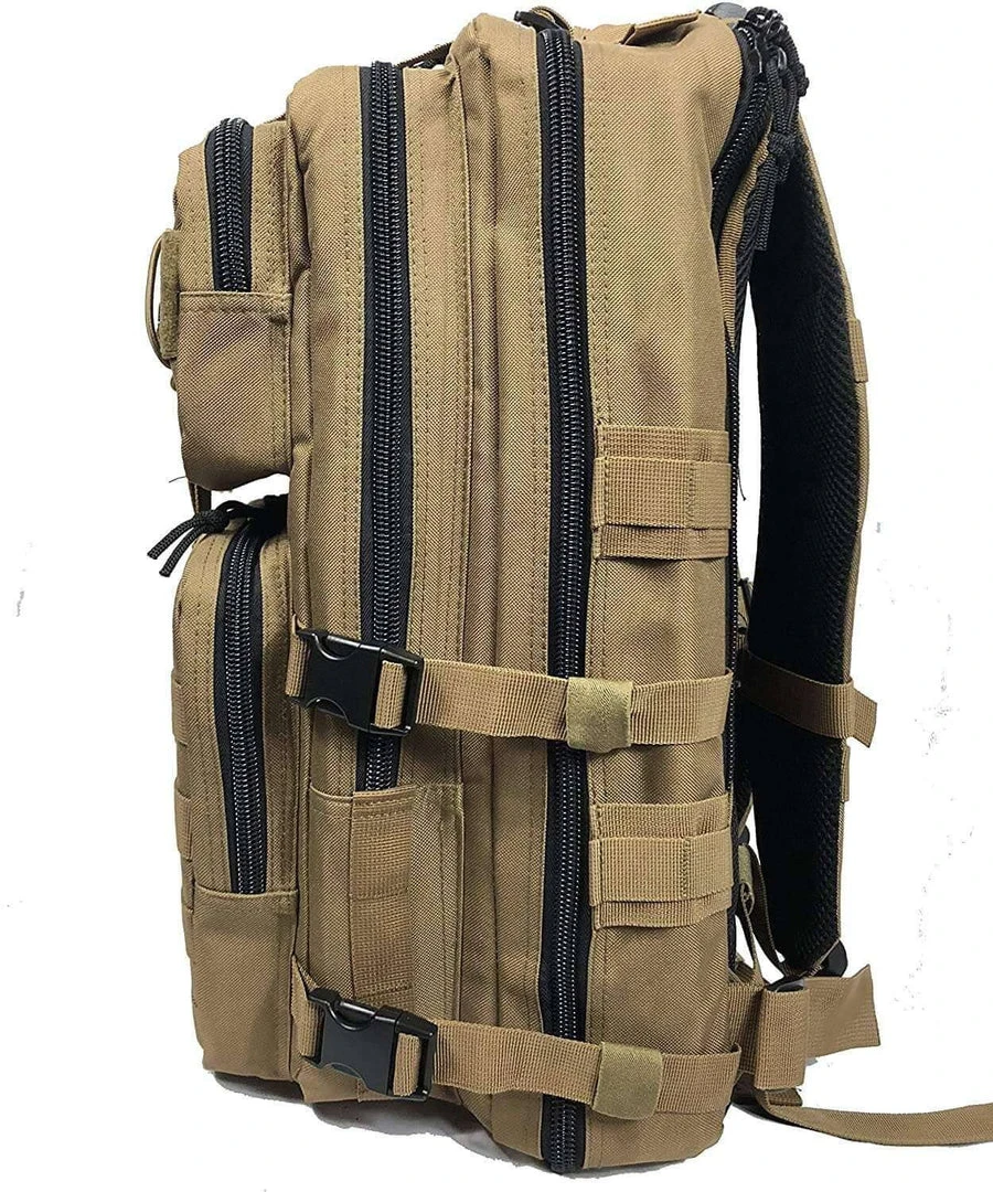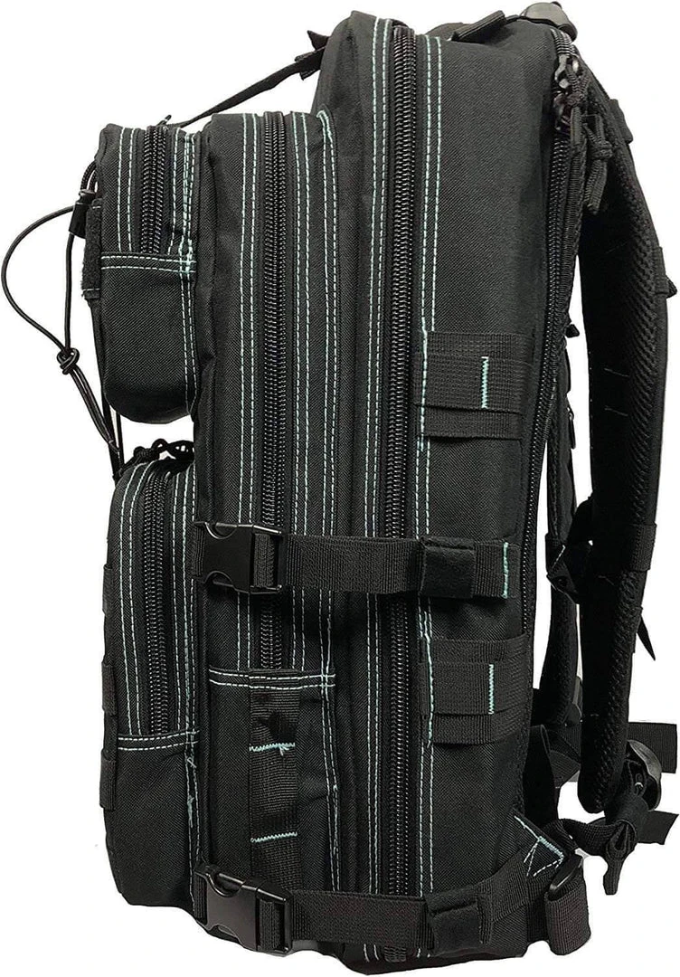 - Adjustable sternum and waist straps; Molle webbing for attachments