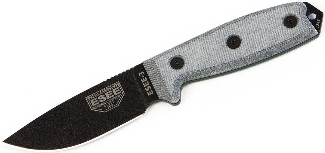 This is the model that started it all. After designing the RAT-3 for Ontario Knife Company, it was the first design they brought over when ESEE Knives (Formerly RAT Cutlery) was formed. These knives are made from high carbon 1095 steel. And while 1095 is a top choice for professional cutlery designed for hard use, it will rust and stain if not properly cared for – especially on the cutting edge and around the laser engraving. It is the user’s responsibility to keep the blades properly lubricated and cleaned. We suggest using a good oil such as ballisol which has been proven for over 100 years. The ESEE-3 is still a favorite amongst law enforcement and military teams due to its light weight, thin profile and various sheath options.