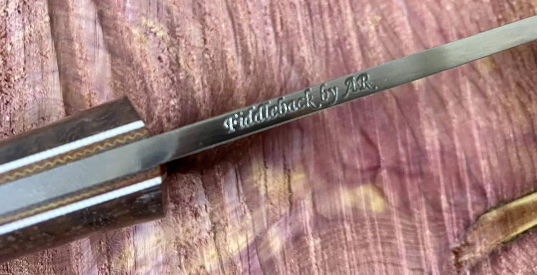 PLEASE READ: This knife information and pictures represents the actual knife sold and custom built by Fiddleback Forge. Quantity is limited and each knife is handmade making this a unqiue and hard to find.