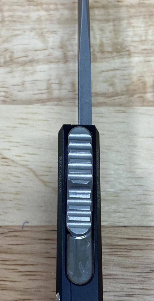 The Guardian Tactical Recon-035 sets the industry standard for OTG Automatics a lot higher. With its patented OTF mechanism, opening and closing this blade is significantly smoother and very strong. Their new locking mechanism doesn’t touch the blade in motion thereby reducing friction and wear. The thumb slide utilizes a steel plate and ceramic balls to eliminate typical OTF wear on the aluminum handle.