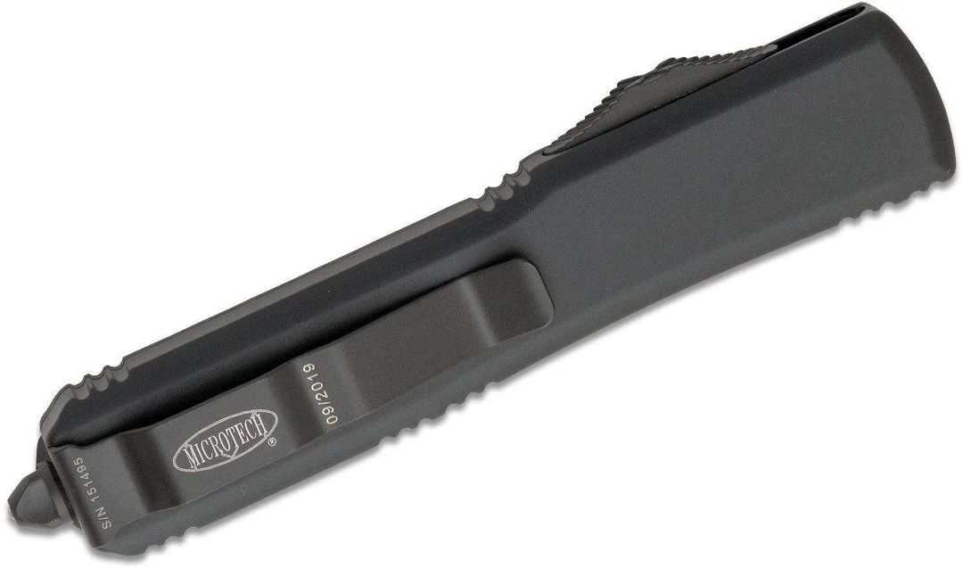 The Ultratech, will forever set the standard for all out-the-front knives. Ultratech is Microtech’s original dual action out-the-front knife, and has been the foundation of their entire OTF line. Over the years, it has gone through several modifications, each time becoming more efficient and reliable. This version has the improved contoured handle with texturing thumb slide for more positive purchase. The Ultratech’s spring remains in an “at rest” position at all times except when deployed. This ensures that the compressed spring will not become fatigued, assuring users that when the knife is fired, it will operate effectively. Ultratech can take many different forms; it can be topped with a standard machined aluminum top or a piece of carbon fiber. The Ultratech’s light weight, one handed open and close action, slim shape, and scalpel sharp blade make it a one of a kind knife, only available through Microtech. This knife has proven time and again that it can withstand any obstacle. Only time will tell what the next step will be for the Ultratech series.