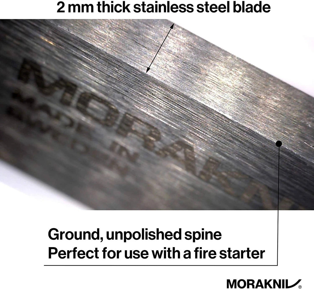 The blade is 2 mm thick and 56 mm long (or in this case short). It is made of high-quality Swedish stainless steel (12C27) that is treated to the highest quality in Morakniv’s factory. Add to this the convenient size of the blade, suitable for many outdoor tasks encountered on the hike as well as the camping or hunting trip. A secure grip of two different polymers and a click locks makes it safe to handle. Perfect for both new and more experienced explorers.