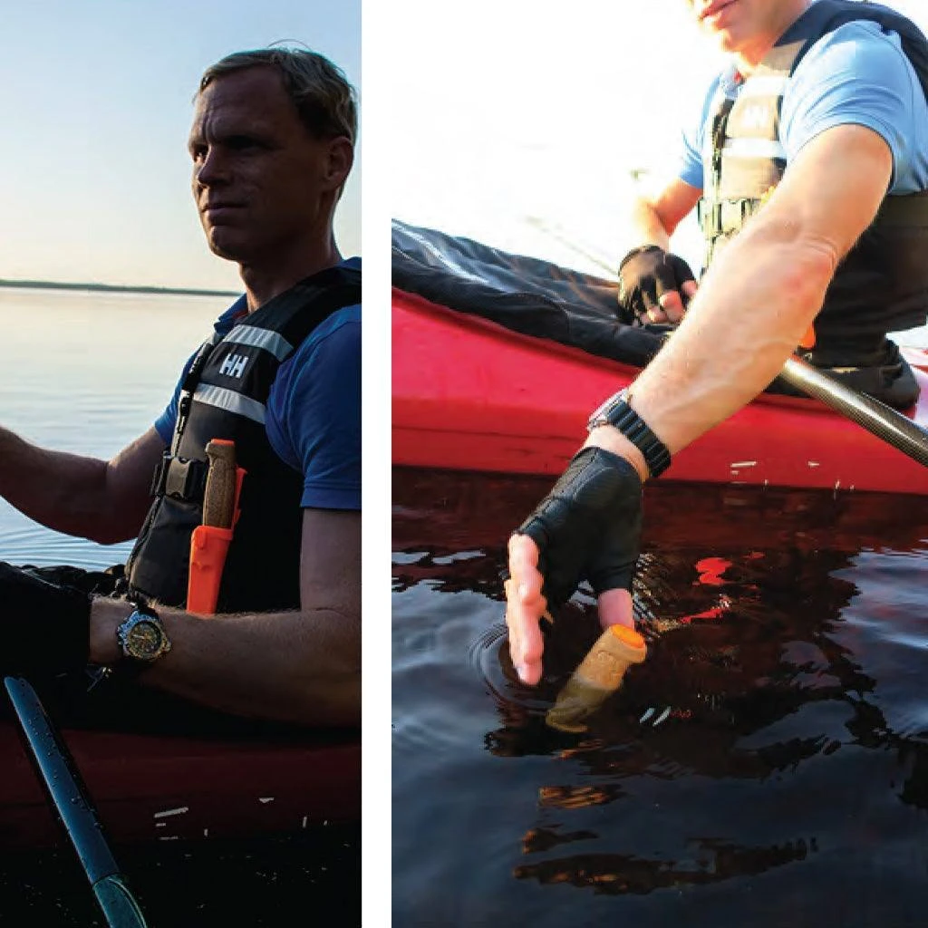 A very lightweight knife with an orange core that makes it highly visible and easy to locate. An orange high visible sheath with a smart button lets you connect and link several knives from our Craft segment, giving you the opportunity to carry your preferred combination of models. The coil formed rounding of the ergonomic handle made of cork is a pleasure to hold and doesnt conduct cold. Easy to take with you by connecting it to your belt, backpack or lifesaving vest with the clip on the sheath. The thin serrated blade of stainless steel is specially designed for cutting rope, fiber, and nylon. The rounded tip is keeping you and your boat from injuries and providing a safe practice when cutting rope or nets out on the water.