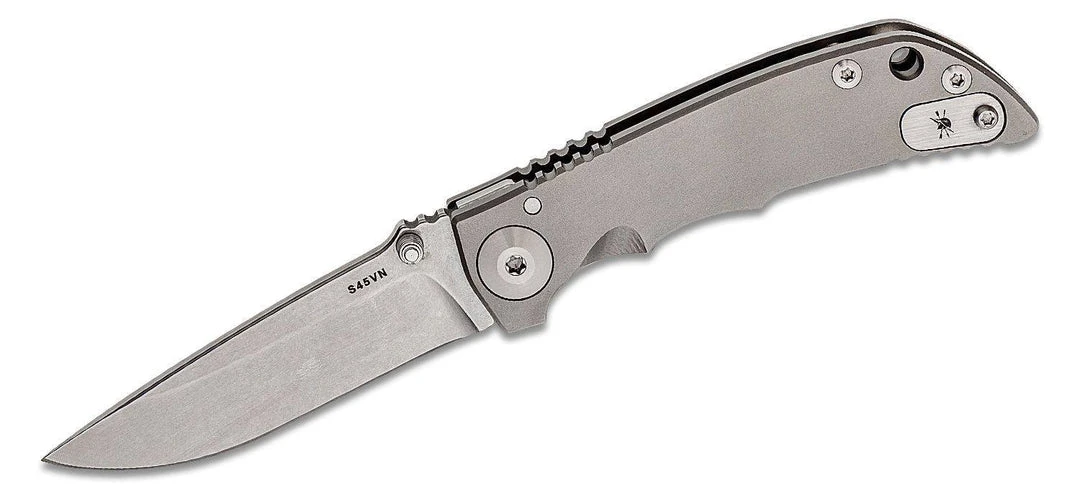 The Spartan Harsey Folder 3.25 “SHF 3.25” is Spartan Blades latest folder collaboration with legendary knife maker, William “Bill” Harsey Jr. The SHF 3.25 is the knife many of you have been waiting for! A reliable 6Al4V titanium frame lock knife with a 3.25″ CPM-S45VN blade. It touts improved corrosion and wear resistance over S35VN, which is already an industry standard, so we have some pretty high expectations for this piece right here. Easy to carry and comfortable in the hand, this knife is a truly exceptional gentleman’s (or ladies) folder. Constructed like its award-winning big brother the SHF, the SHF 3.25 is totally made of 6Al4V titanium, with the exception of the pivot, blade, and stop pin. This medium-sized folder has a reversible pocket clip and dual thumb studs allowing for left and right-hand carry.