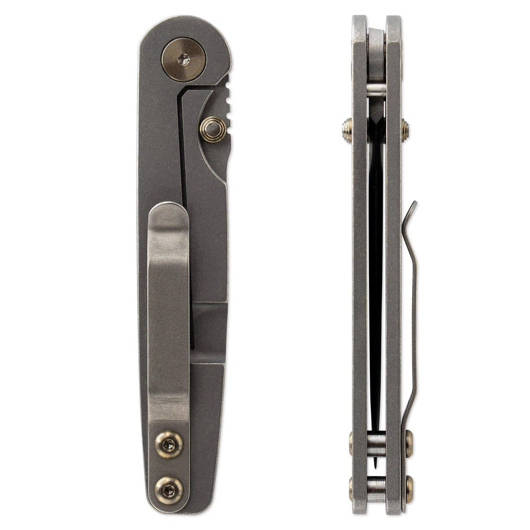 Toor Knives Suitor FL154S Folding Knife 3″ CPM-154 Stonewashed Drop Point Blade, Stonewashed Titanium Handles