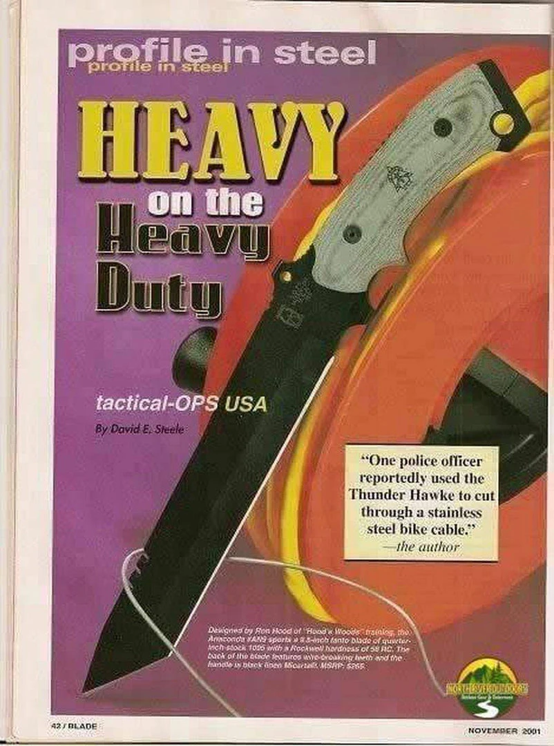 Designed by Ron Hood of “Hoods Woods,” this knife has been around the world and has proven itself from the African jungles to the Alaskan frontier. Its unique design enables the user to enhance the downward stroke of the knife by the angular relationship to the sturdy handle. Ron Hood’s experiences have made him a highly respectfully authority in the survival community, worldwide. His experiences have enabled the “Anaconda” design, to be a “field functional tool” in all terrains, and most worthwhile for military and civilians alike.
