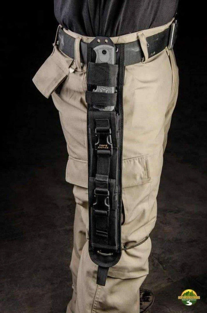 “The idea was a cross between a machete and a large camp or chopping knife. Most Machetes are made from thin stock and not intended to cut things much thicker than vines and foliage. The Armageddon is 1/4″ thick but with the full-flat-ground-re-curved blade. It will do most chores as well as other heavier tasks like chopping wood or building a shelter. ‘Basically, this is more of a North American version of a machete,’ says Trace Rinaldi, designer of the Armageddon from TOPS Knives.”