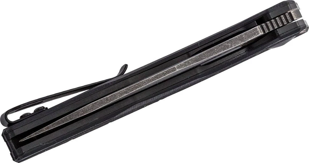 A 3.25-inch drop point blade gives users plenty of edge for cutting tasks. High-end CPM-20CV blade steel provides reliable edge retention and corrosion resistance. Scratches blend in with the blade’s BlackWash finish. Black G10 is machined on both the front and back of the handle.